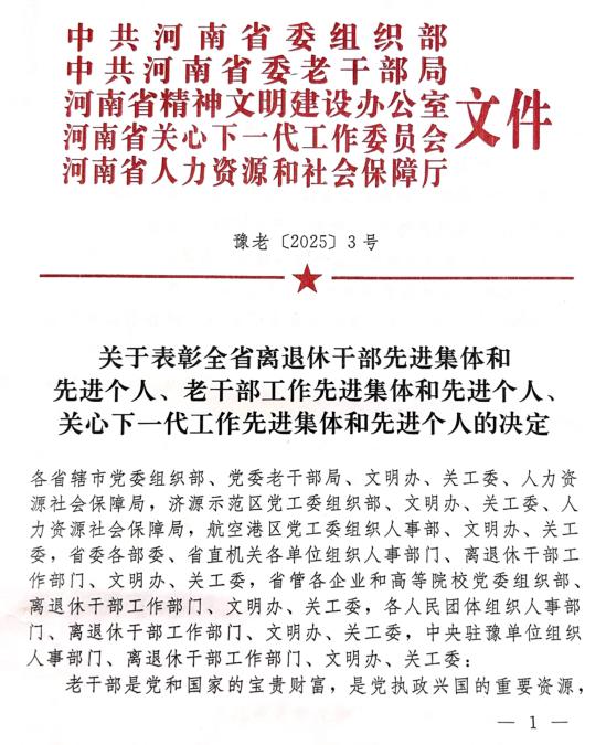 本网讯(文/图 张晨)近日,全省离退休干部先进集体和先进个人、老干部工作先进集体和先进个人、关心下一代工作先进集体和先进个人表彰名单公布,乐鱼官方端网站登录入口关心下一代工作委员会荣获“全省关心下一代工作先进集体”称号。