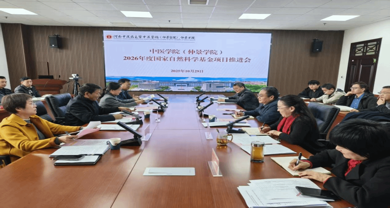 本网讯(文/图 孟六阳)为扎实推进2026年度国家自然科学基金项目申报工作,切实提升申报质量与立项水平,2025年10月29日,中医学院(仲景学院)、仲景书院在教学实验大楼A332会议室组织召开国家自然科学基金项目申报推进会。副校长张振强莅临指导,科学技术处处长王永霞、副处长周艳丽、自然科学管理科科长赵培源,学院领导班子、各科研团队负责人及拟申报项目的骨干教师与青年教师代表参加会议。