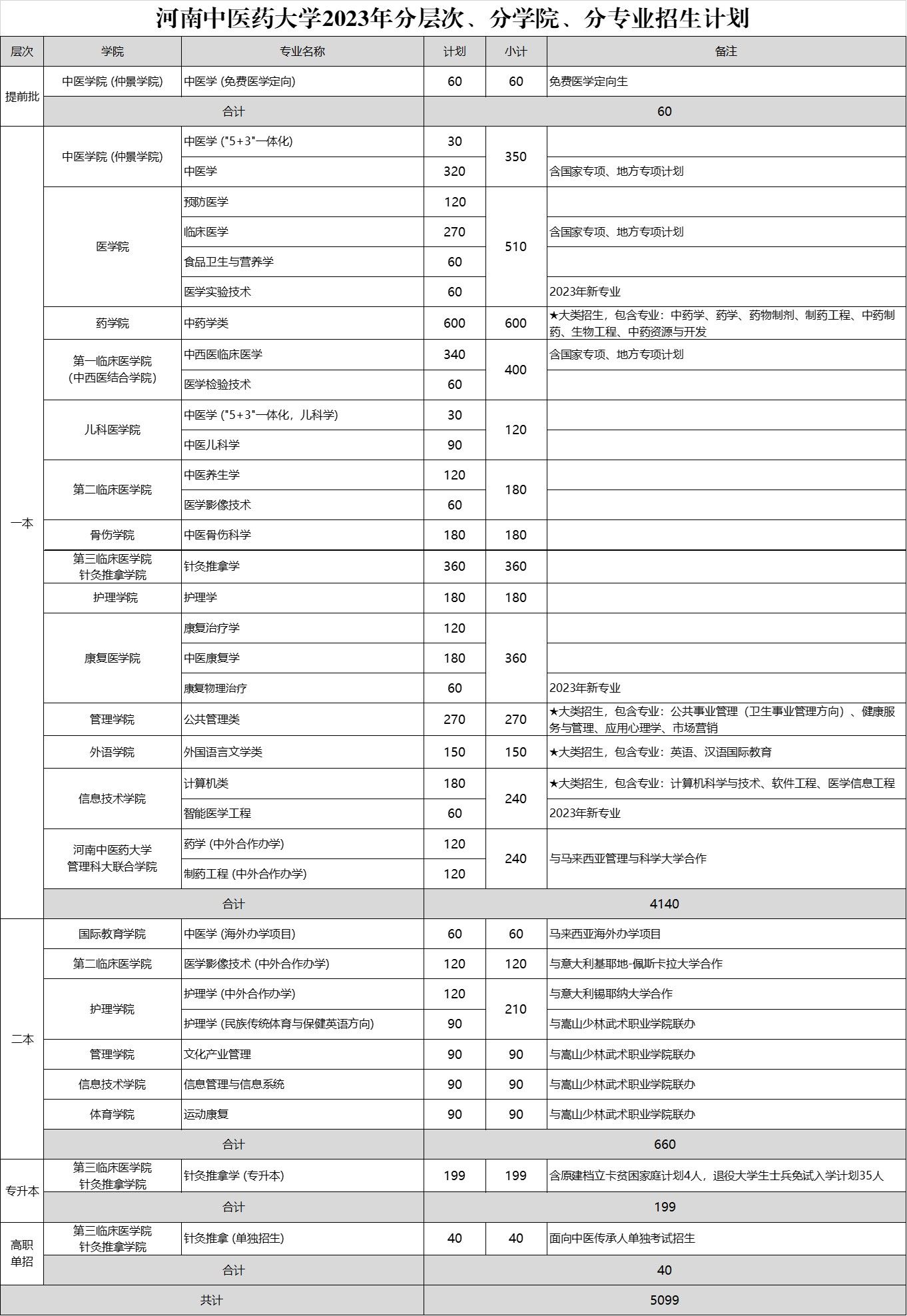 2023年乐鱼官方端网站登录入口在河南省参加提前批、国家专项计划本科批、本科一批、地方专项计划本科批、本科二批等五个批次的招生录取工作。普通本科招生专业36个,在河南省提前批招生专业为中医学(免费医学定向),招生计划60人;本科一批按专业招生的有中医学(“5+3”一体化)、中医学(“5+3”一体化,儿科学)、中医学、针灸推拿学、中西医临床医学、护理学、预防医学、康复治疗学、医学检验技术、医学影像技术、中医儿科学、中医养生学、临床医学、中医康复学、中医骨伤科学、食品卫生与营养学、医学实验技术、康复物理治疗、智能医学工程、药学(中外合作办学)、制药工程(中外合作办学)等21个,按大类招生的有中药学类、公共管理类、外国语言文学类、计算机类等4个,本科一批专业招生计划共4140人;本科二批招生专业有中医学(海外办学项目)、护理学(中外合作办学)、医学影像技术(中外合作办学)、护理学(民族传统体育与保健英语方向)、文化产业管理、信息管理与信息系统、运动康复等7个,招生计划660人;专升本招生专业为针灸推拿学,招生计划199人;专科招生专业为针灸推拿(单独招生),招生计划40人。