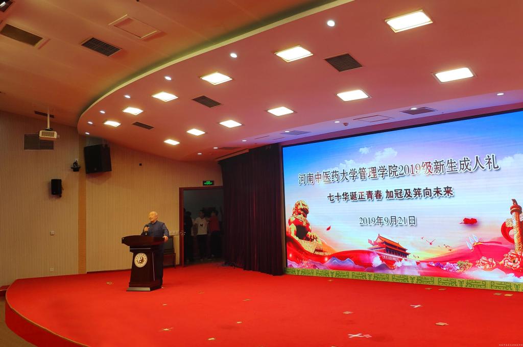 本网讯(文图/杨文君)“古有冠笄之礼,今有成人仪式”。在新中国成立70华诞即将来临、“不忘初心、牢记使命”主题教育扎实推进之际,2019年9月21日下午,管理学院“七十华诞正青春,加冠及笄向未来”2019级新生成人礼活动在图书馆第一报告厅顺利举办。全国中医典籍与语言文化研究专家学术传承与人才培养首批专家、河南省儒医文化研究会会长许敬生教授和管理学院领导班子全体成员、乐鱼官方端网站登录入口中医医史文献学科教师代表及管理学院教师代表、全体辅导员、新生家长代表、2019级全体新生等300余人参加活动。