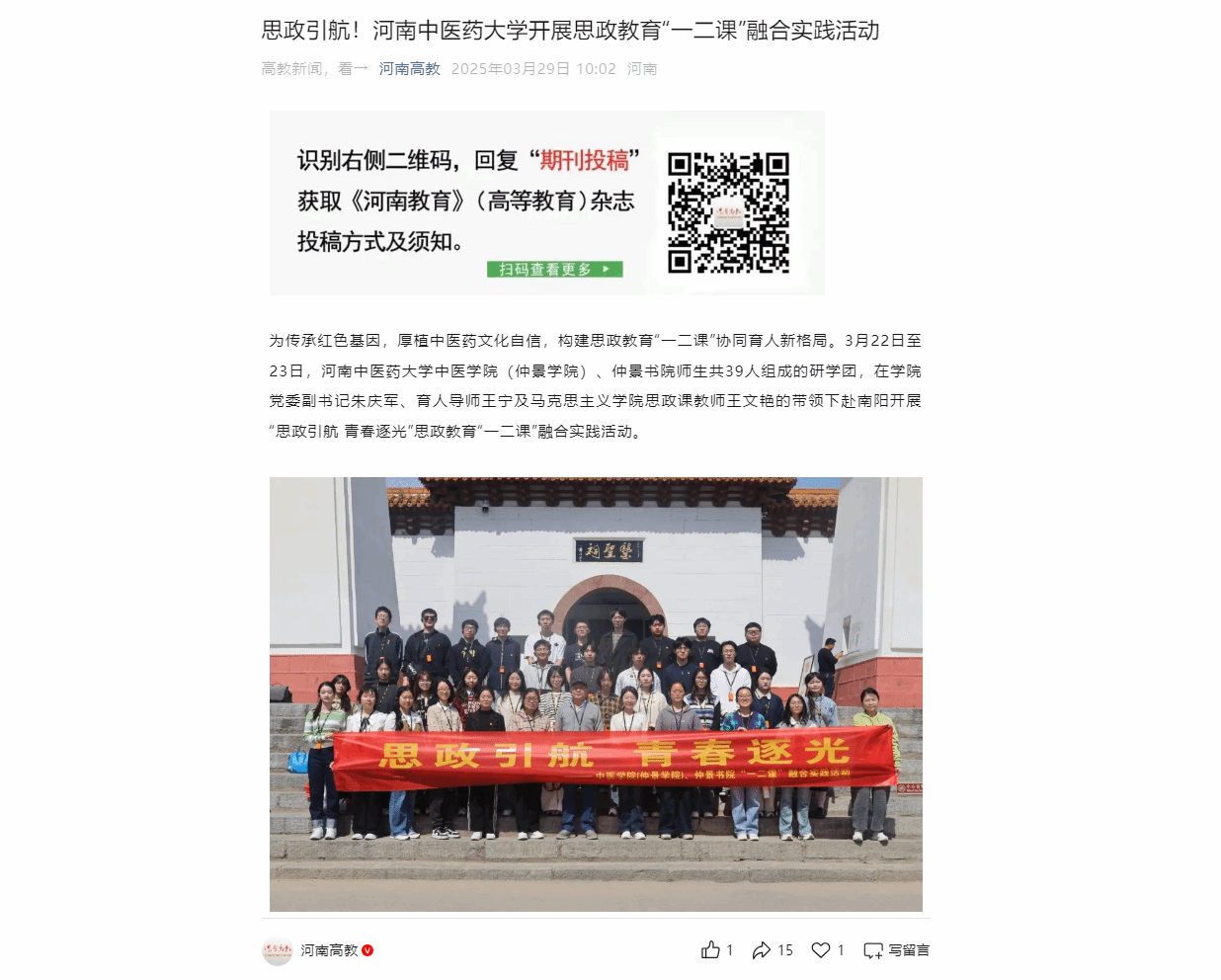 河南高校思想政治工作信息专栏丨思政引航,青春逐光!乐鱼leyu(中国)开展思政教育“一二课”融合实践活动