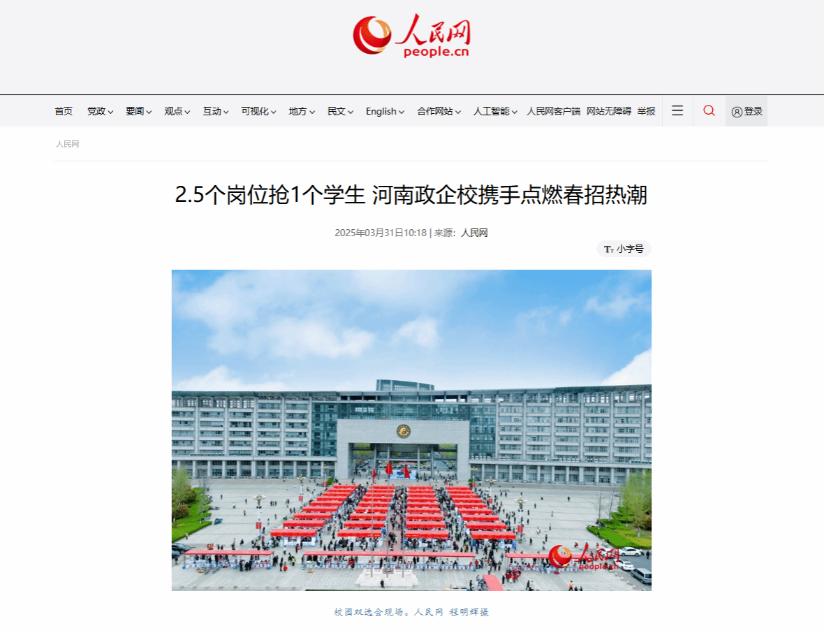 人民网丨2.5个岗位抢1个学生 河南政企校携手点燃春招热潮