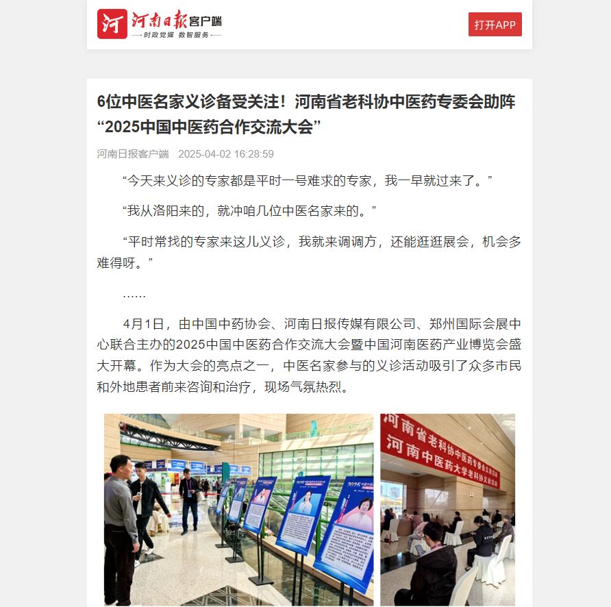 6位中医名家义诊备受关注!河南省老科协中医药专委会助阵“2025中国中医药合作交流大会”