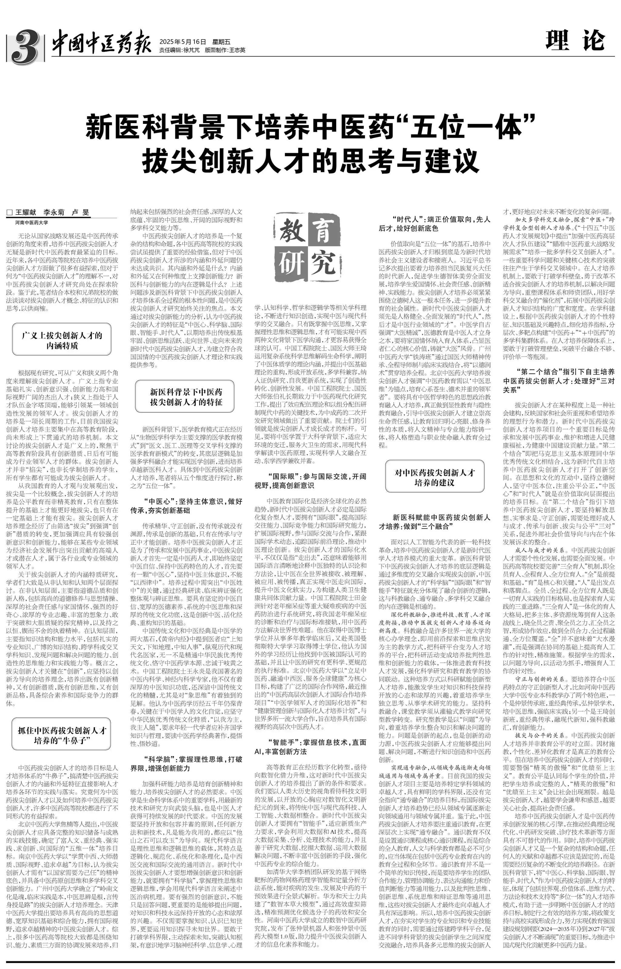 新医科背景下培养中医药“五位一体” 拔尖创新人才的思考与建议