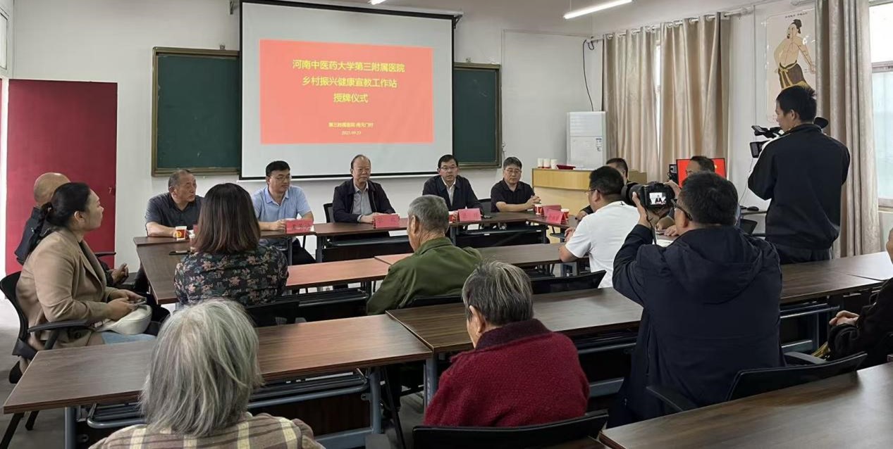 9月23日上午,乐鱼官方端网站登录入口第三附属医院乡村振兴健康宣教工作站授牌仪式在村委会多媒体教室举行。三附院党委副书记张政,党委宣传统战部主任李志刚,随队专家和瑞欣、李琳琳,赵岗乡党委书记匡辉、卫生院院长余林章,驻村工作队、村民代表等40余人参加活动。仪式由驻村第一书记孟长海主持。
