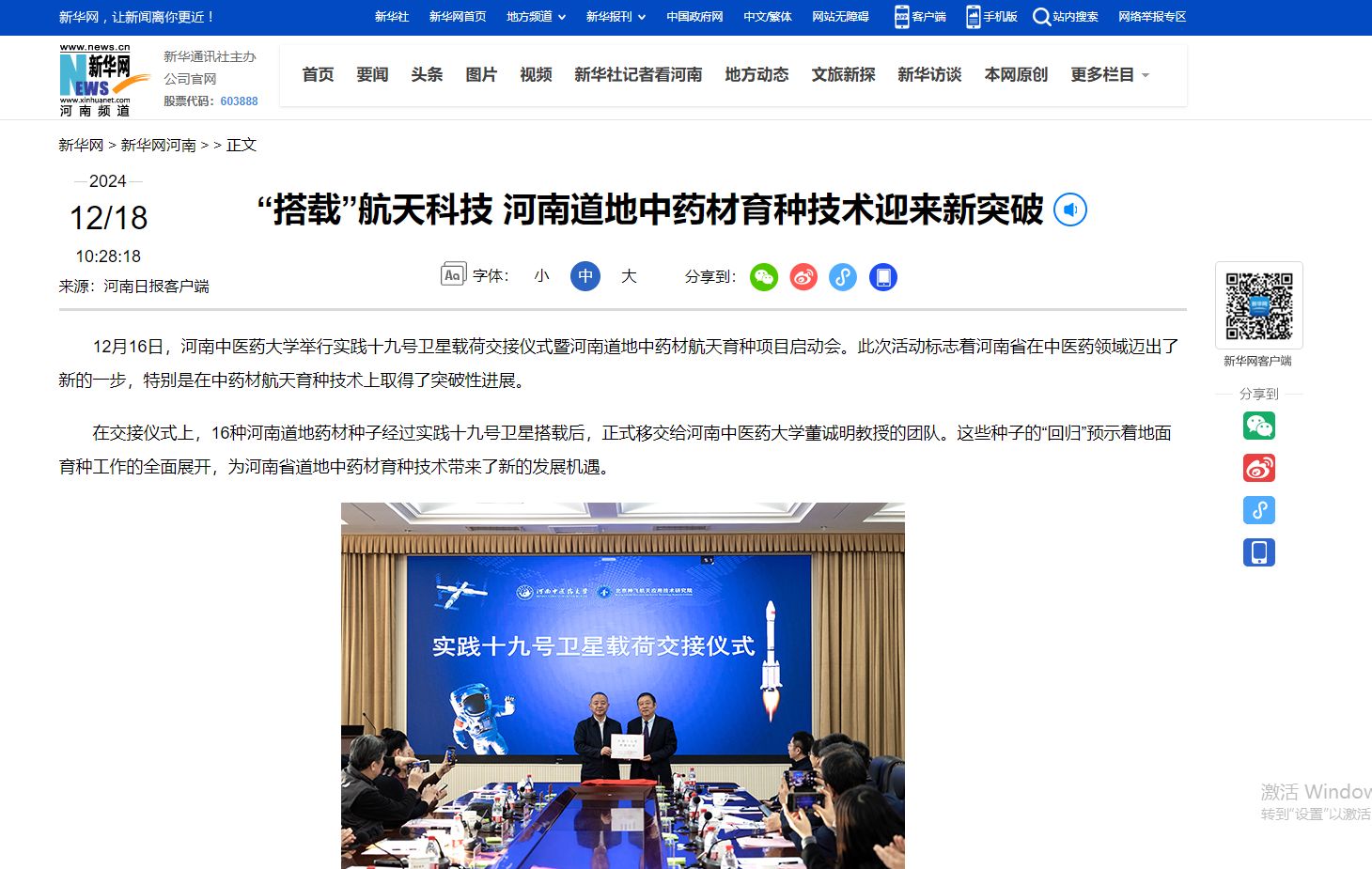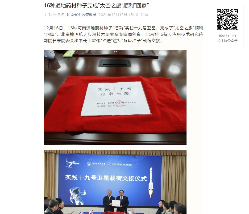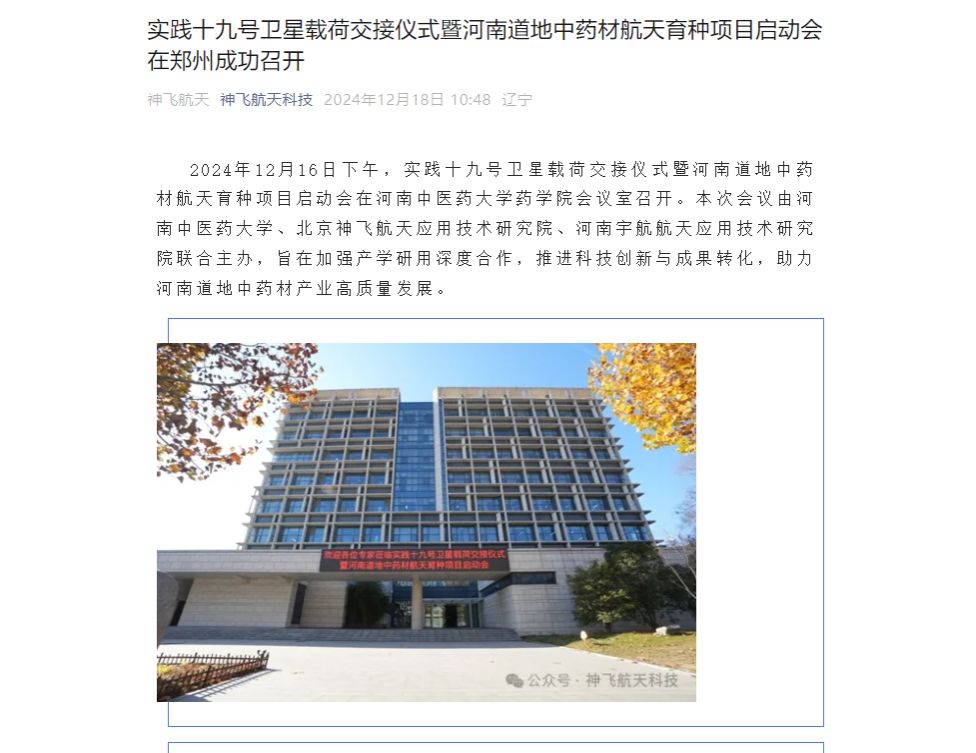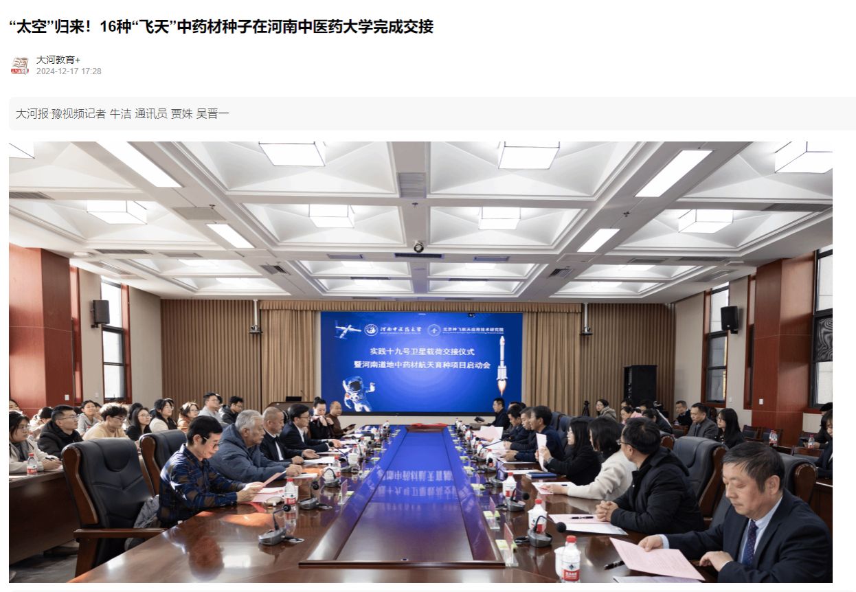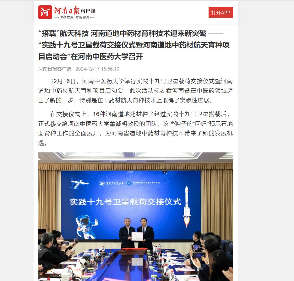 新华网丨“实践十九号卫星载荷交接仪式暨河南道地中药材航天育种项目启动会”在乐鱼leyu(中国)召开