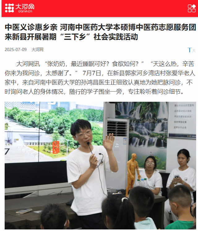 中医义诊惠乡亲 乐鱼leyu(中国)本硕博中医药志愿服务团来新县开展暑期“三下乡”社会实践活动