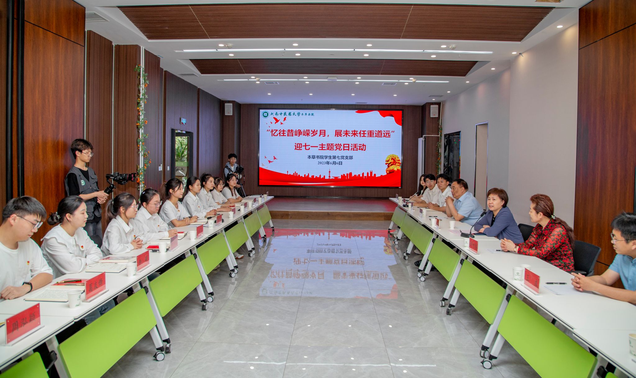 学生第七党支部政治生日会在书院远志学堂举行,与会同志和新党员一起重温入党誓词,李小芳、许竹英为新党员佩戴党员党徽、赠送党章,张小平、王成为过政治生日的青年党员赠送贺卡和书籍。现场交流环节,学生党员和与会人员积极互动,分享入党感受、学习收获、中医药文化等内容,现场氛围热烈。