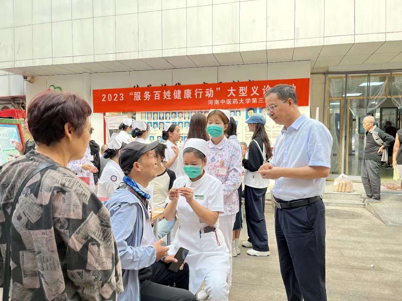 河南省卫生健康委员会党组副书记、副主任侯红在郑东新区如意湖义诊活动现场慰问三附院参加义诊的专家们