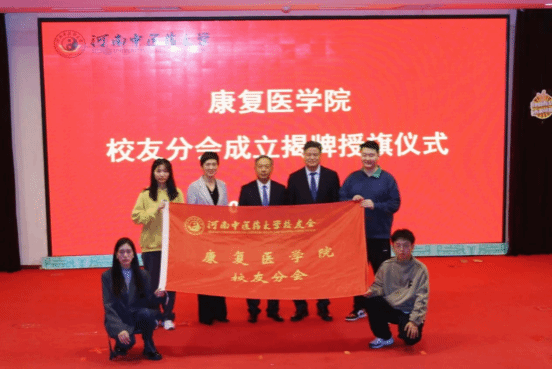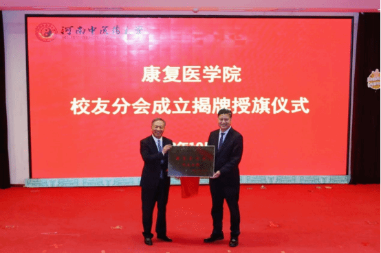 仪式上,张运克代表学院揭牌,徐江雁为校友会授牌并与张运克一起举行揭牌仪式。在授旗环节,由施淼为康复医学院校友会授旗,康复医学院校友代表魏泽凡和在校学生代表柴伟涵、张恩慧、马钰莹等接旗。