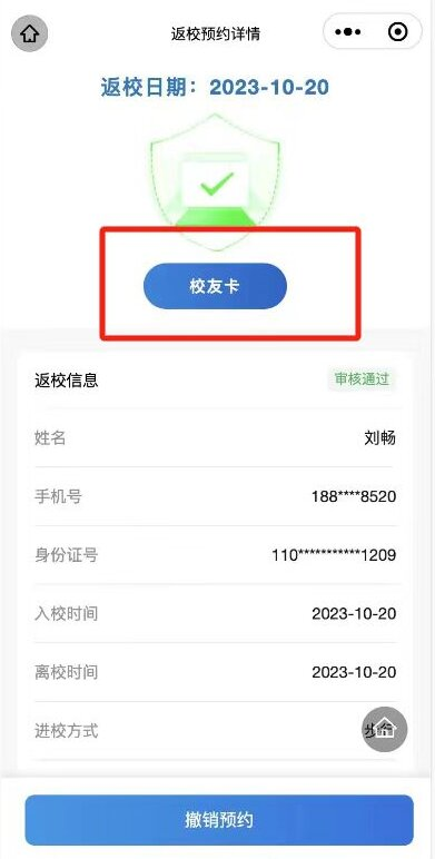 (2)校友平台将按实际需求动态调整预约名额,可提交十天以内的返校预约。现开放龙子湖校区所有入口,向门卫出示预约成功页面即可入校。